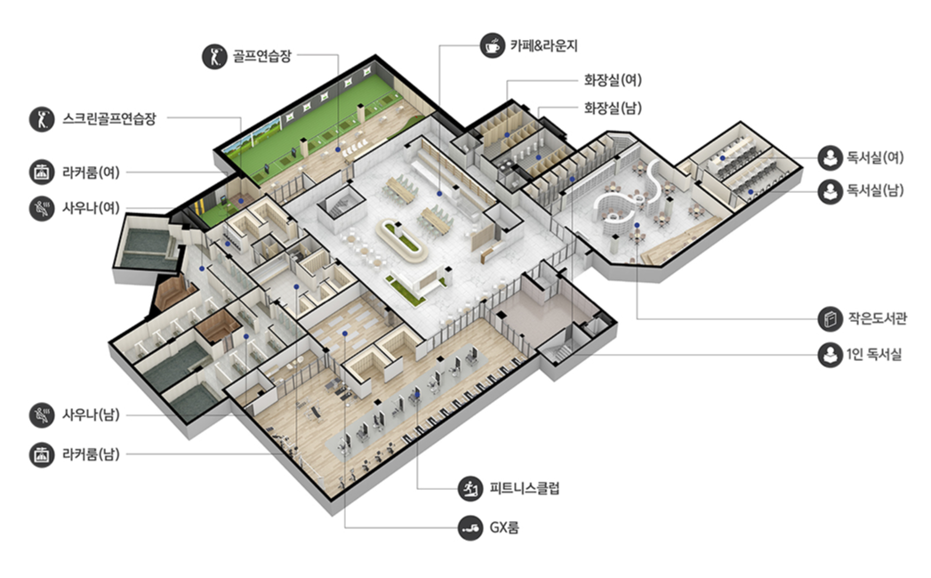 고촌 센트럴 자이 커뮤니티에 대해 알아보겠습니다. 고촌 센트럴 자이에는 문화생활을 즐길 수 있는 CLUB XIAN이 있습니다. 다양한 운동기구가 마련된 피트니스클럽, 입주민들이 실내에서 골프를 즐길 수 있도록 골프연습장이 있습니다. 운동 후 간단한 샤워를 할 수 있는 사우나도 마련되어 있습니다. 조용한 분위기에서 독서와 학업을 할 수 있는 작은도서관, 입주민들의 간단한 음료도 마시며 모임을 할 수 있는 카페와 라운지가 있습니다. 멀리 나가지 않아도 단지 내에서 문화 생활을 즐길 수 있어 입주민들이 선호하는 시설이 되지 않을까 생각됩니다.