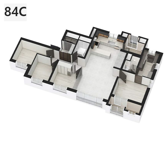 부산 에코델타시티 대성베르힐 평면도에 대해 알아보겠습니다. 중대형 위주로 구성되어 있습니다. 84타입은 구 33평 정도의 크기입니다. 판상형 위주로 이루어져 있어 거실 베란다 창문과 주방 창으로 환기가 잘 되는 구조입니다. 타입에 따라서 방이 4개 또는 3개로 구성되어 있습니다. 요즘 신축은 수납공간이 많은 구조가 많은데 에코델타시티 대성베르힐은 팬트리나 드레스룸이 크게 나와있습니다. 방이 3개인 구조인 84A, A-1, AP의 경우에는 주방 옆에 대형 팬트리가 추가로 있어 수납에 특화된 구조입니다. 방은 3개이지만 수납이 있는 것이 더 좋다고 생각하시면 84A, A-1, AP를 선택하시면 좋고 방이 4개인 것이 중요하다고 생각하면 84B, C를 고려하시면 좋을 거라 생각됩니다. 84A-1의 경우에는 안방 앞에 테라스가 있는 것도 특징입니다.
