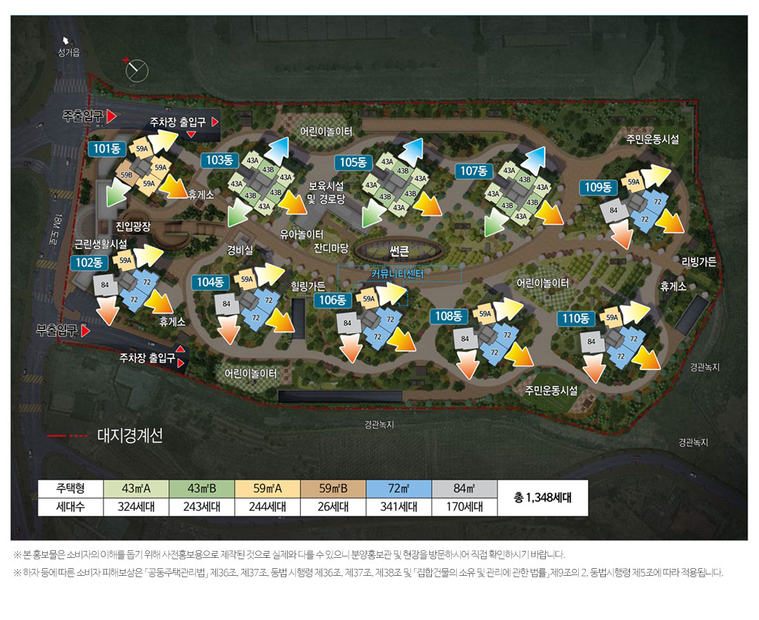 북천안자이 포레스트는 지하 2층부터 지상 26~29층까지 총 10개동으로 이루어져 있습니다. 리빙가든, 잔디마당 등 배치해 단지내 공원과 같은 조경으로 꾸며주었습니다. 어린이 놀이터, 유아 놀이트를 여러 군데 설치하여 아이들이 마음껏 뛰어놀 수 있는 공간을 많이 마련해 두었습니다. 따라서 어린 자녀가 있으신 부모님들이라면 안심하고 아이들이과 단지내 어린이 유아 놀이터에서 즐거운 시간을 보내실 수 있습니다. 또한 휴게소, 주민운동시설을 통해 입주민들이 충분히 휴식을 취하고 운동을 할 수 있는 공간도 마련하였습니다. 주출입구와 부출입구 사이인 101동과 102동 앞에는 근린생활시설이 있어 입주민들이 상가를 자유롭게 이용하실 수 있습니다.