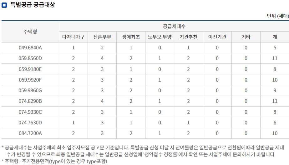 공급 세대수 총 160세대 (일반 공급 82세대, 특별 공급 78세대)