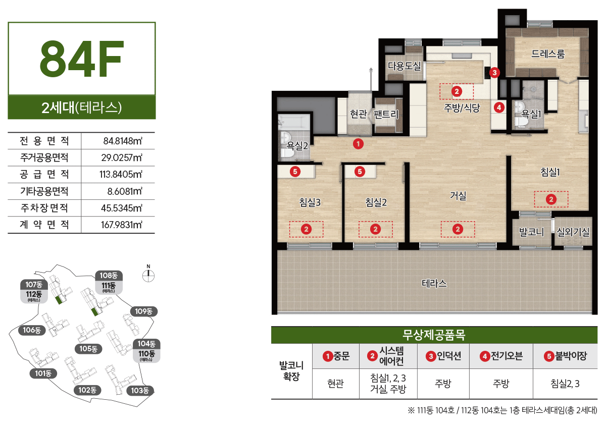 이편한세상 용인역 플랫폼시티 평면도에 대해 알아보겠습니다. 인기가 많은 평형대로 구성되어 있어 실속있는 구성이라고 생각됩니다. 우선 구 25평대인 59 타입이 많습니다. 59C 테라스 타입이 3세대가 있습니다. 테라스라는 희소성 때문에 인기가 아주 많으리라 생각합니다. 아이를 키우시는 분들이라면 더 고려하실 만한 타입이라 봅니다. 판상형 3bay 타입인 59A의 테라스가 더 추가된 형태입니다. 59A는 침실 1, 거실, 침실 2가 남향위주로 보고 있습니다. 침실 3은 안방 맞은편에 있습니다. 주방이 ㄱ 자형태로 되어 있고 아일랜드 식탁이 있어 요리 동선이 편리할 거라 생각됩니다. 다용도실에는 세탁실로 사용할 수 있습니다. 평수가 작긴 하지만 수납을 할 수 있는 팬트리가 없어서 다소 아쉽습니다. 59B 타입은 타워형 구조로 된 구 25평입니다. 안방인 침실 1의 경우 59A타입과 달리 붙박이장을 유상옵션으로 선택하는 것이 아니라 드레스룸이 작게 있습니다. 그 외 유상옵션인 현관 중문, 시스템 에어컨, 전기오븐, 인덕션, 침실 2 붙박이장이 있습니다.