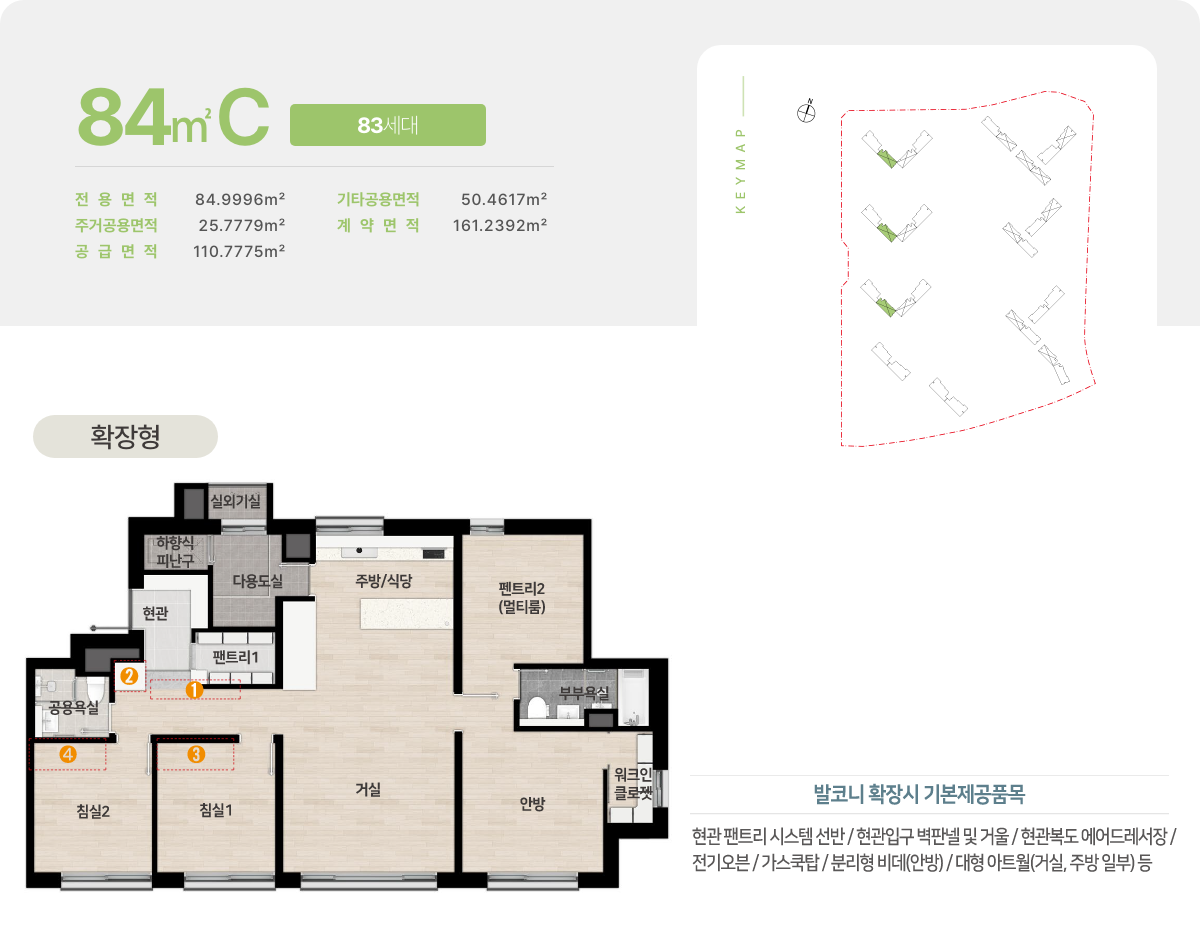 청주 동일하이빌 파크레인 평면도를 살펴보겠습니다. 대부분 남향 위주로 배치하였고 4BAY 판상형 타입입니다. 많은 분들이 선호하는 스타일이기 때문에 인기가 많으리라 생각됩니다. 구 33평인 84 타입은 총 3종류로 A, B, C가 있습니다. 방 4개인 구조이지만 선택하는 옵션에 따라 멀티룸을 수납공간으로 쓰실 수 있습니다. 또한 현관에 대형 팬트리가 있어서 많은 짐을 수납할 수 있습니다. 만약 수납이 부족하시다면 멀티룸을 수납공간으로 선택해 시스템 선반으로 구성하시면 됩니다. 안방과 침실 1,2, 거실이 다 남향 위주로 보고 있어 채광에 좋은 구조입니다. 주방과 거실이 트여 있어 넓어 보입니다. 주방과 거실 창으로 환기가 용이해 쾌적함을 유지하기 좋습니다. 중대형 위주의 평형대로 되어 있는 것이 특징입니다.