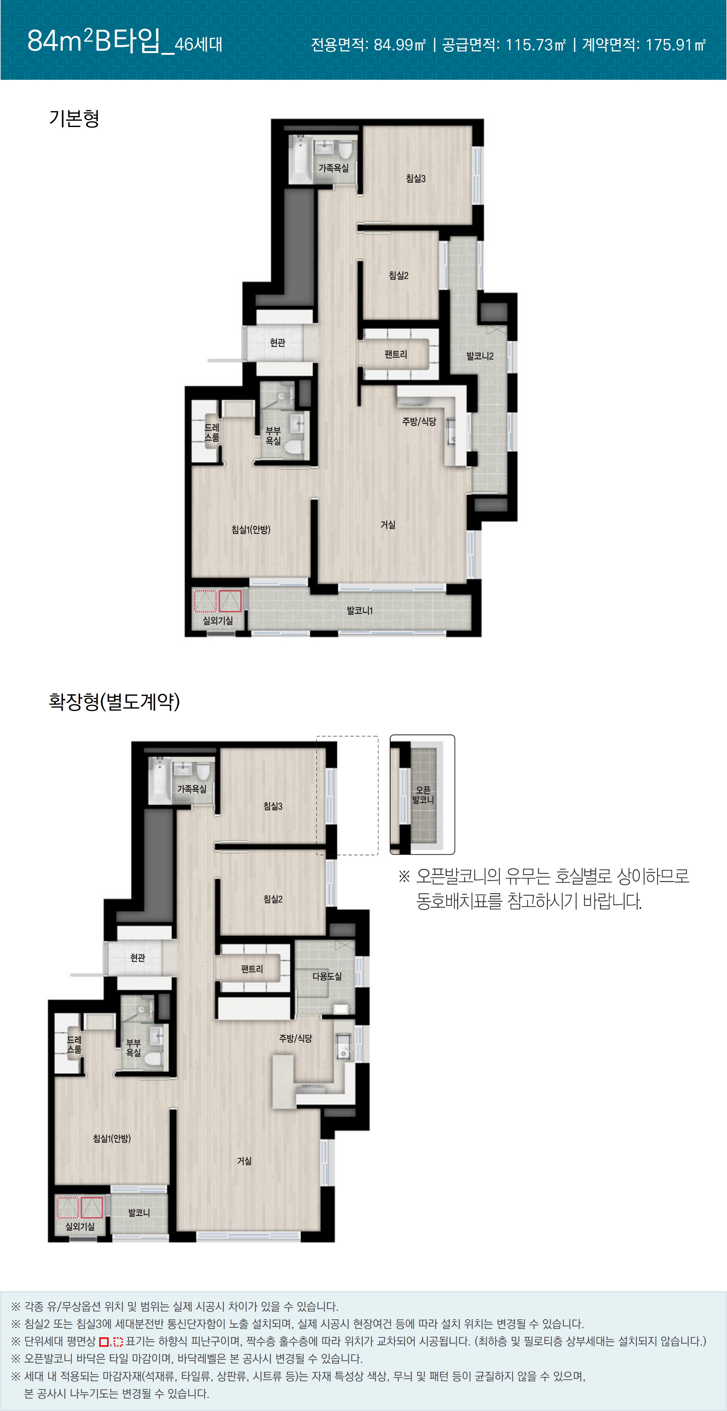 84A타입을 보겠습니다. 판상형 4BAY구조로 모든 방과 거실이 채광이 좋은 구조입니다. 또한 부엌 창과 거실 창으로 맞바람도 칠 수 있어 환기에도 좋습니다. 이 구조는 대형 팬트리가 침실 2 앞에 위치해 있는데요. 수납 공간이 아주 좋아 주부들의 선호도가 높을 것이라 생각합니다. 그 외에도 대형 드레스룸과 오픈 발코니도 있어 평면도로 보니 구조가 아주 좋아보입니다. 마지막으로 84B타입을 보겠습니다. 이 구조는 타워형 구조입니다. A 타입에 비하면 드레스룸이 조금 작아 좀 아쉽습니다. 하지만 거실이 큰 창이 두개나 있어 해가 하루종일 들어올 수 있을거라고 봅니다.